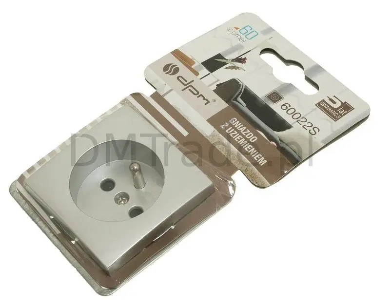 Gniazdo z uziemieniem dla ramek z serii Corner 60, w kolorze srebrnym.