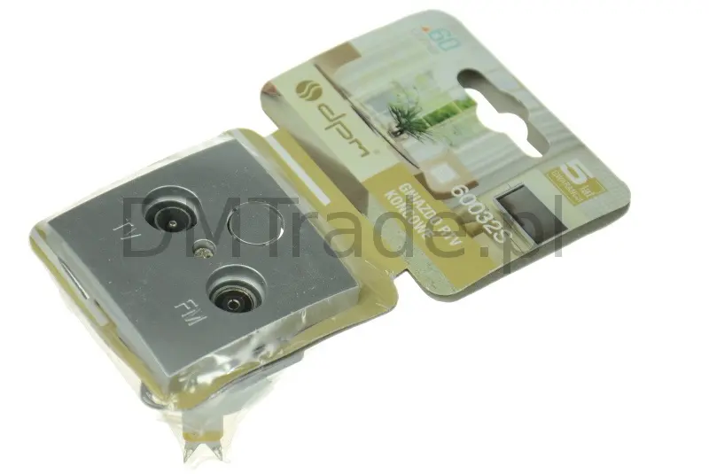 Gniazdo końcowe RTV dla ramek z serii Corner 60, w kolorze srebrnym.
