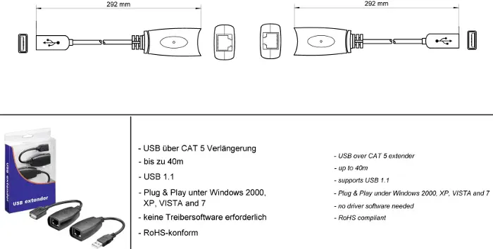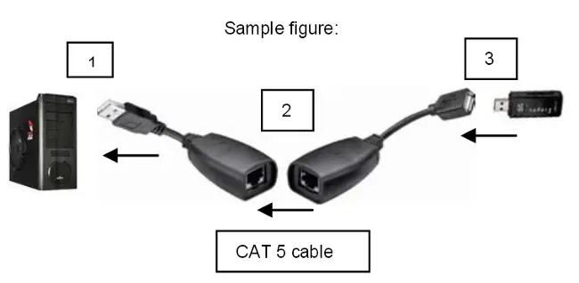 Konwerter CAT 5 / 5a / 6/ USB 1.1 przeznaczony do transmisji sygnałów USB za pomocą kabla sieciowego do 40 metrów!