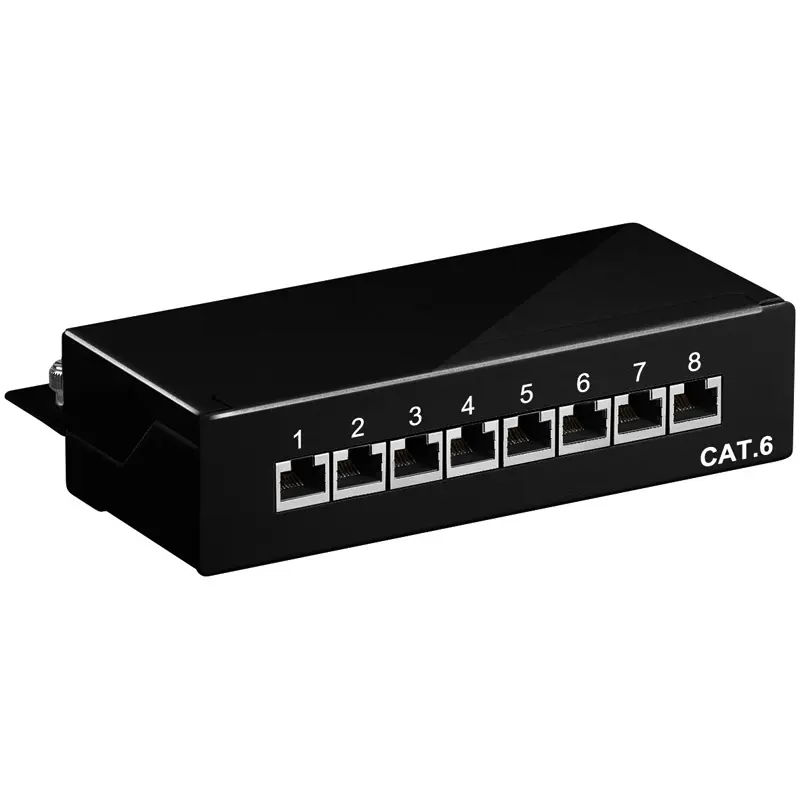 Patch panel STP kat.6 8 portów R-45 nadający się do zamontowania w szafak Rack 19"