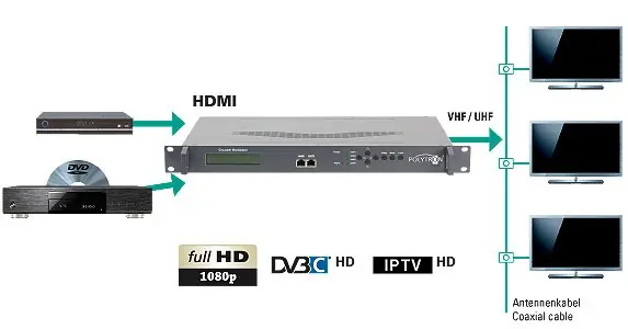 - HDMI input: FULL HD (1080p, 1080i, 720p)HDM-2 C Modulator