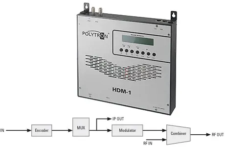 Modulator HDM-1C konwertuje sygnał HDMI w standardzie kanału DVB-T (QAM). Sygnał jest również dostępna jako strumień IP i może być wprowadzany do sieci IPTV. Używany format wideo MPEG-4 lub alternatywny MPEG 2.