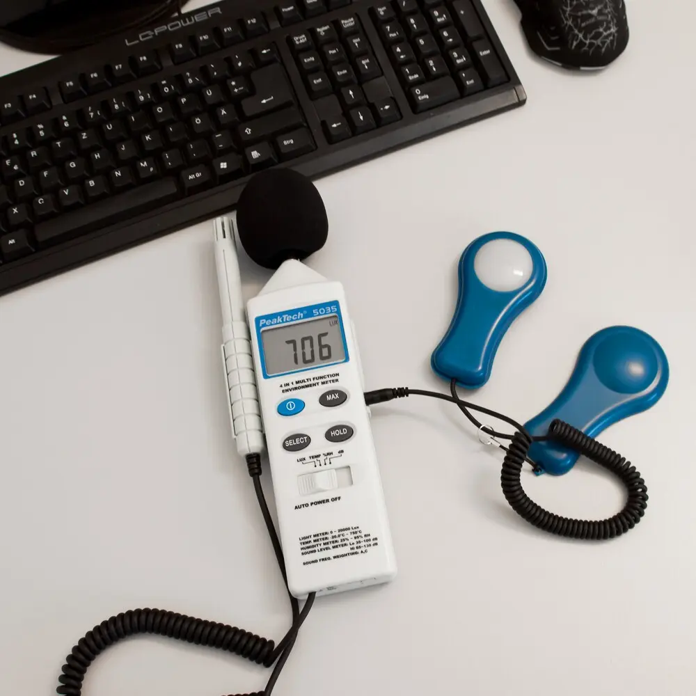 4 w 1 Multifunkcyjny Miernik Środowiskowy hałasu, temperatury, wilgotności oraz światła.