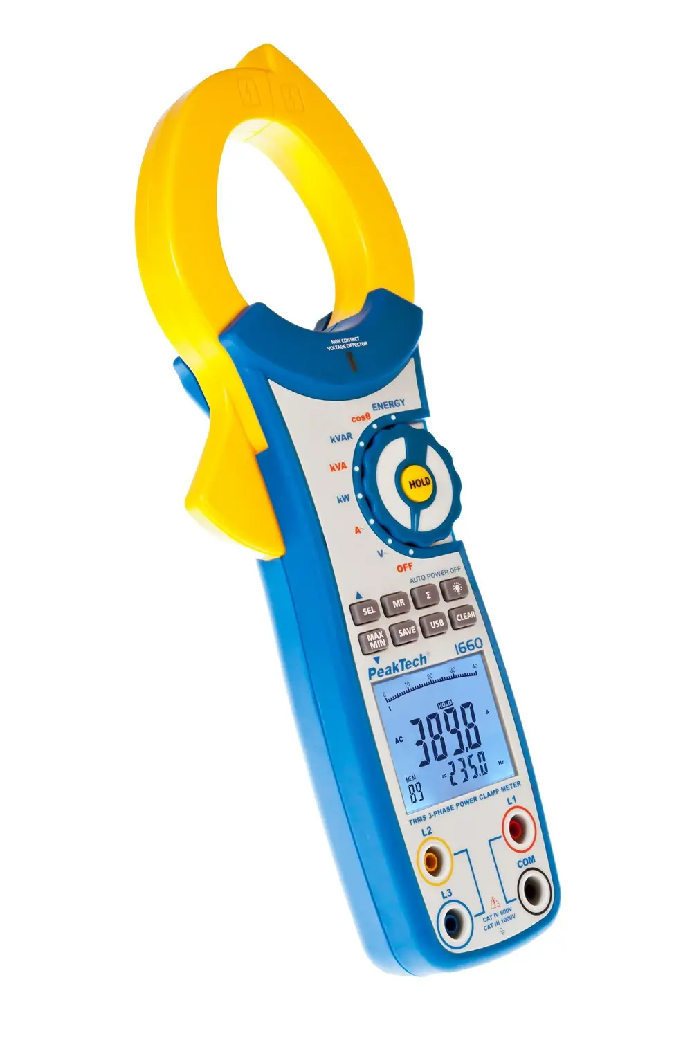 - Miernik cęgowy mocy do pomiaru zużycia energii, również w systemach jednofazowych i trójfazowych,