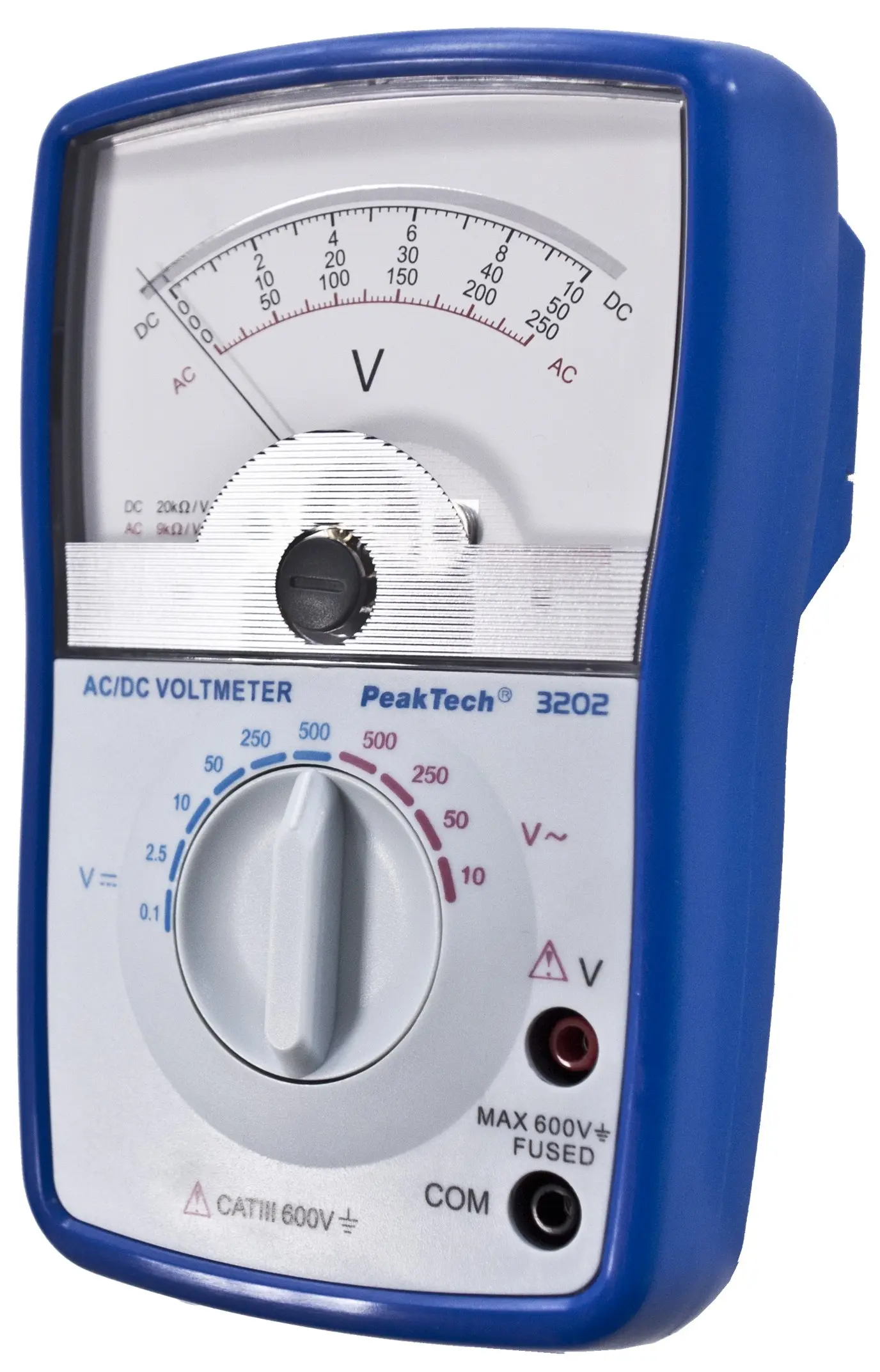 Analogowy woltomierz zapewnia dokładny pomiar napięcia prądu stałego i zmiennego. Urządzenie posiada wyraźny wyświetlacz- Skala lustrzana