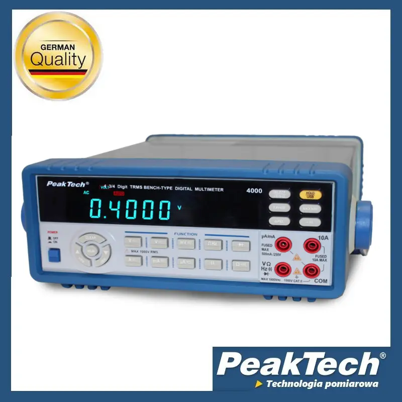 Produkcja PeakTech® posiada certyfikat systemu zarządzania jakością ISO 9000.