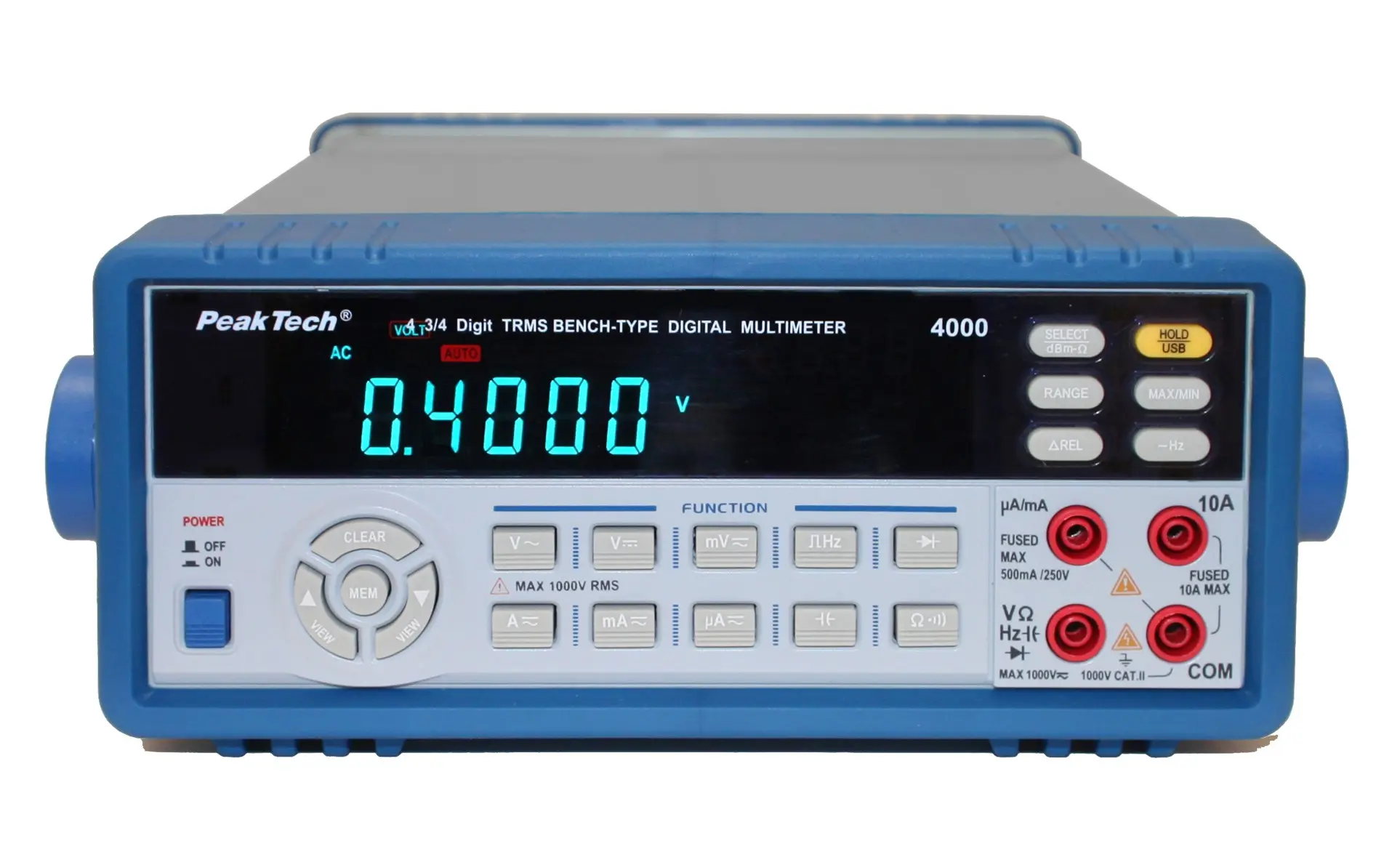 Wysoce precyzyjny laboratoryjny multimetr cyfrowy z interfejsem USB do transferu danych poprzez oprogramowanie PC i funkcją pomiaru wartości True RMS. W zestawie znajduje się oprogramowanie rejestratora danych przeznaczone dla systemów Microsoft Windows. Dodatkowo możliwość przesyłania danych i zdalnego sterowania urządzeniem poprzez RS232, USB, LAN. Pamięć wewnętrzna i rejestrator danych. Pomiar elektrycznych wartości, takich jak napięcie DC/AC, sygnał mieszany DC/AC RMS, a także rezystancja i pojemność Gniazda bezpieczeństwa 4 mm z przewodami pomiarowymi spełniającymi najnowszą normę, pomiar do 1000V i 10A. Zasilanie kablem zasilającym.
