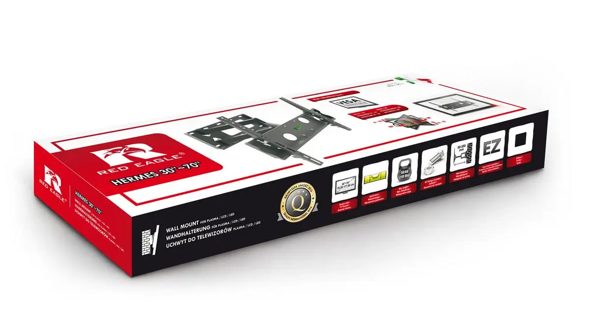 Uchwyt ścienny do LCD 30"-70", regulowany w kolorze czarnym, wykonany z wytrzymałej stali, malowany proszkowo. Zapewnia bezpieczne zamocowanie na ścianie telewizora LED o przekątnej ekranu do 70" i wadze do 50 kg. Ramie o długości 580 mm pozwala na duże wychylenie telewizora od ściany. Możliwość regulacji w pionie do 15 stopni.