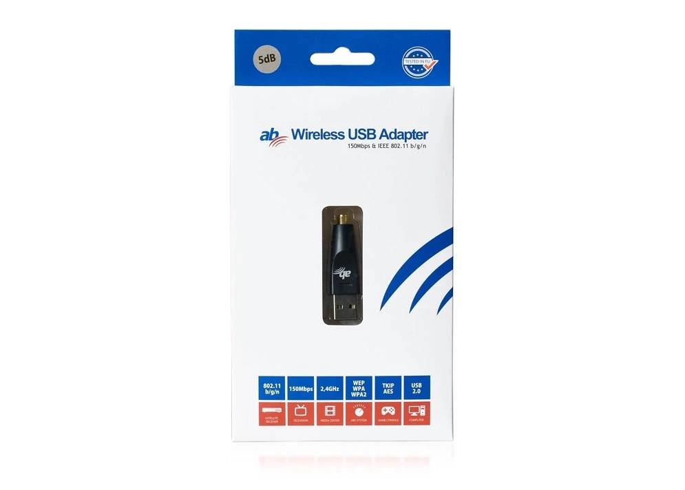 Wifi dongle dedykowany dla modeli tunerów satelitarnych takich jak AB CryptoBox, AB PULSE 4K, Vu+ oraz wiely innych opartych na standardzie 802.11