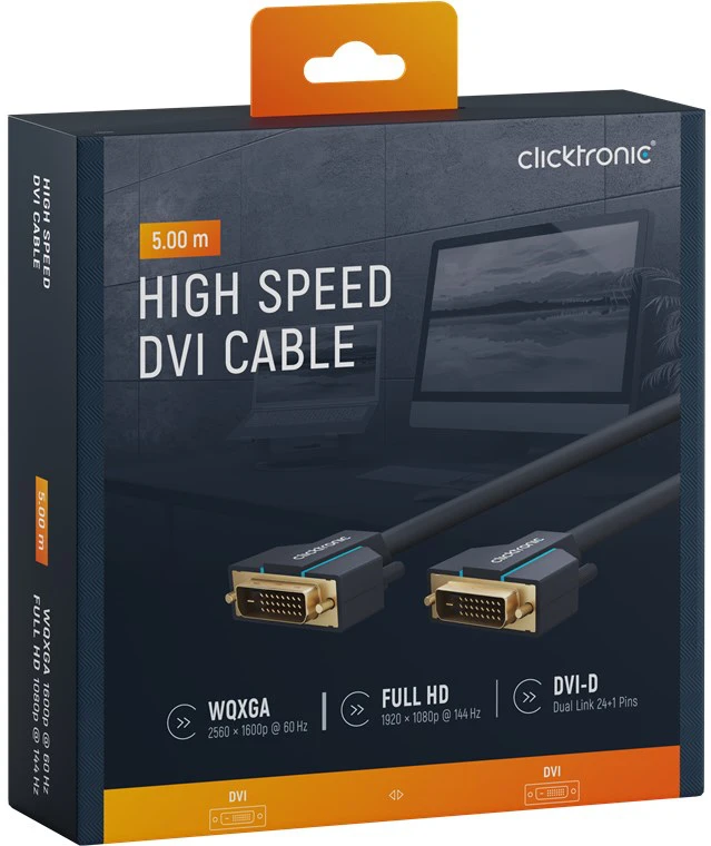 Wysokiej jakości, gruby, solidny przewód DVI/DVI gwarantujący czystą transmisję danych bez zniekształceń dzięki podwójnemu ekranowaniu.