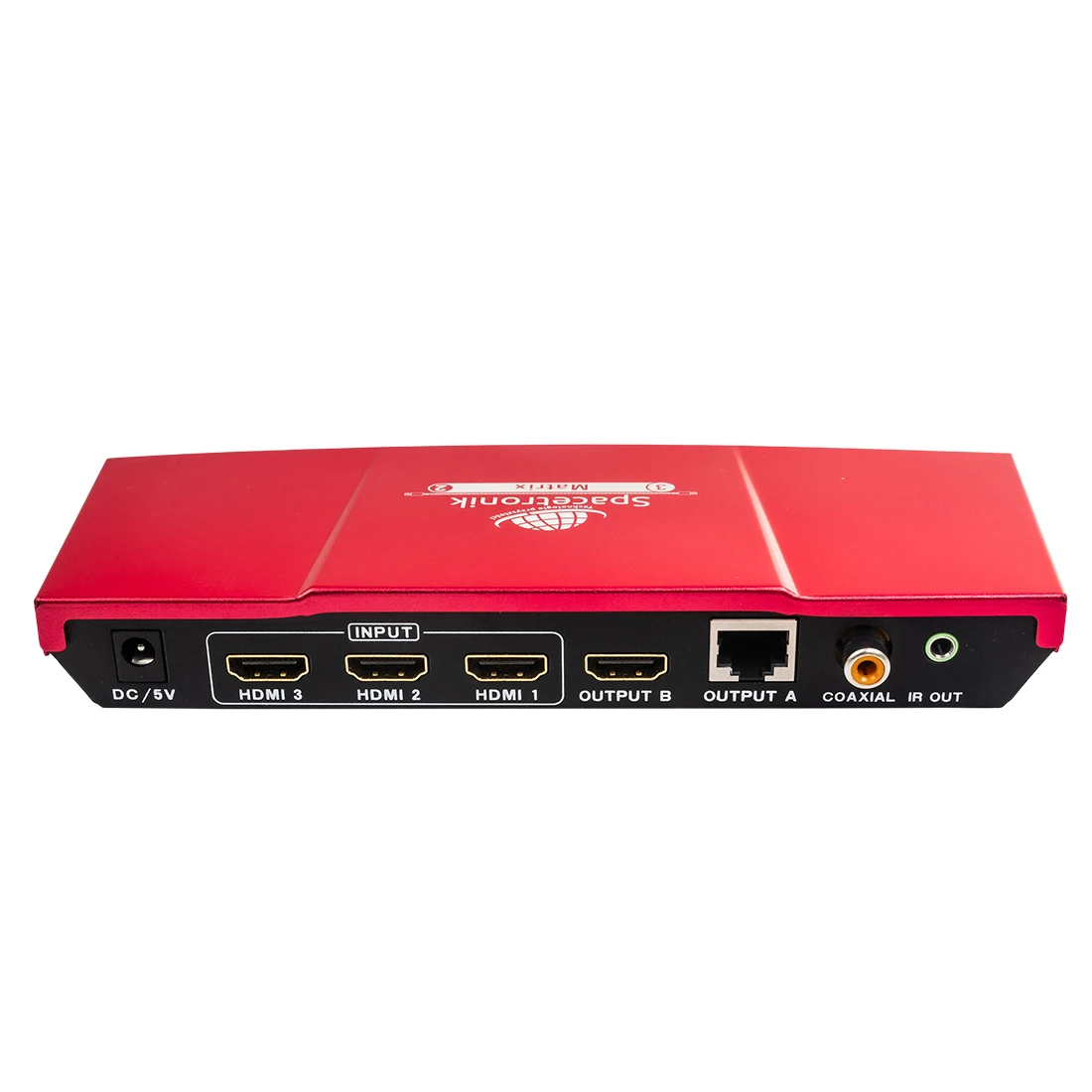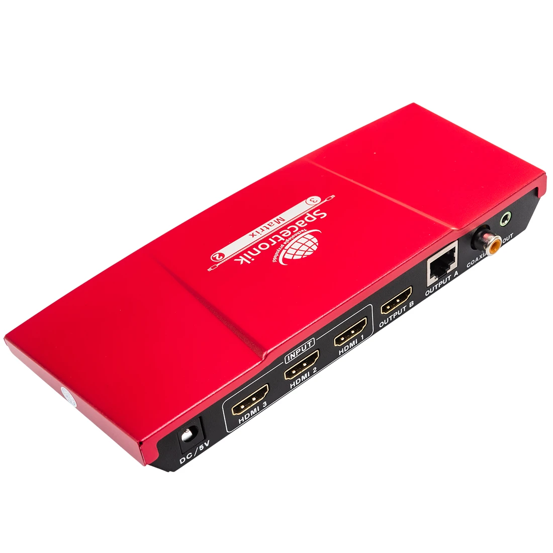 Matrix HDMI 3x2 łączy trzy źródła Ultra HD z jednym wyjściem HDMI 4K Ultra HD i jednym wyjściem rozszerzenia UTP. Rozszerzenie UTP obsługuje transmisję 1080P @ 60Hz do 50 metrów. Każde źródło może być kierowane do dowolnego wyjścia za pomocą przycisków na przednim panelu lub pilota zdalnego sterowania na podczerwień. Dzięki inteligentnemu zarządzaniu EDID dostosuj go do większości urządzeń źródłowych i zlewozmywiających HDMI.