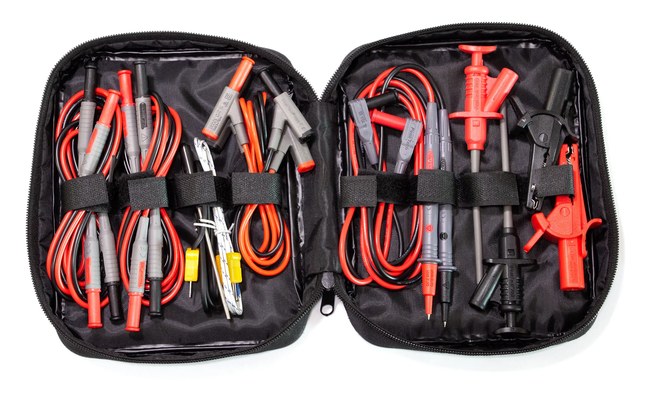 Zestaw akcesoriów pomiarowych do mierników PeakTech. Akcesoria wysokiej jakości, solidnie wykonane i bezpieczne w użytkowaniu. Całośc pakowana w etui w formie walizki transportowej.