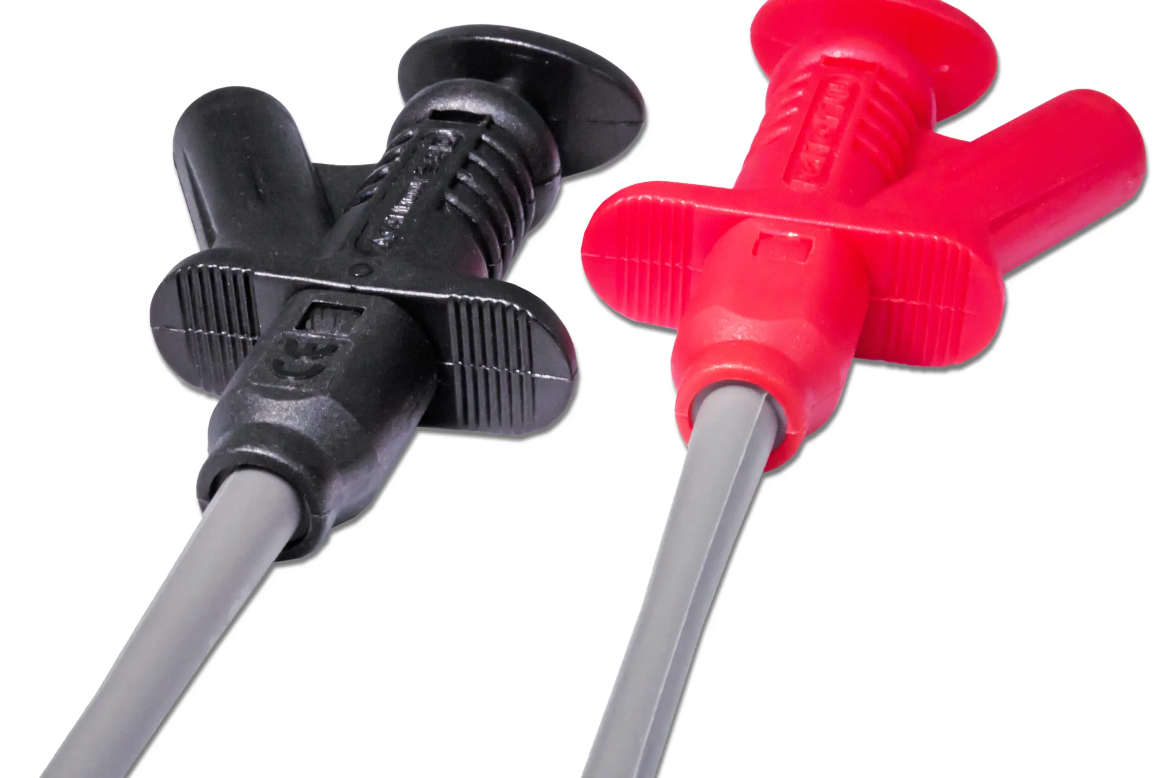 - 2 klipsy typu "krokodylki" 10A: czerwony i czarny
