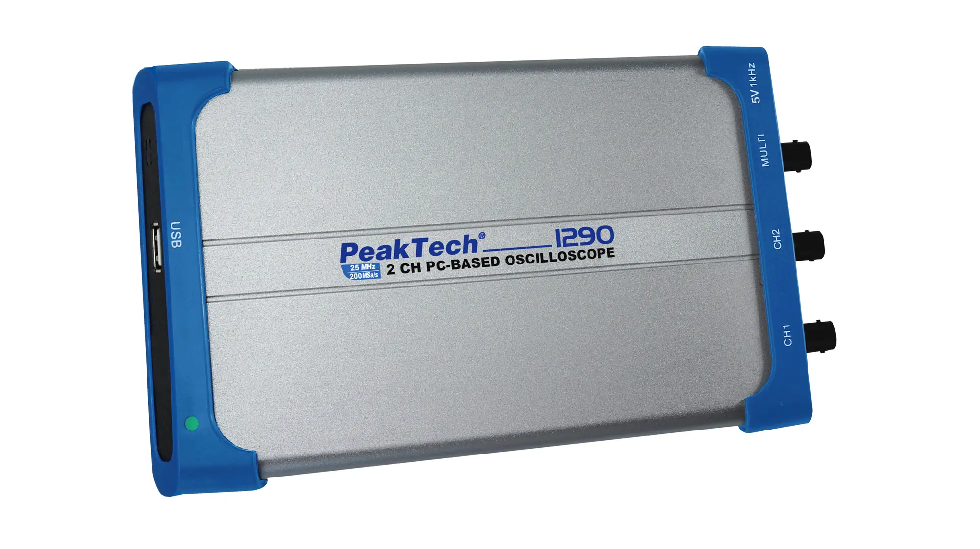 To nowozaprojektowany Oscyloskop 2-kanałowy idealnie nadaje się do zastosowań mobilnych na laptopa i stałej instalacji w szafach sterowniczych, urządzeń przemysłowych i wielu innych zastosowań, w których wymagana jest mały, lekki i mocny oscyloskop.Użytkownik może uzyskać dostęp do danych pomiarowych w ciągu kilku chwil bezpośrednio na komputerze PC za pomocą dołączonego oprogramowania.