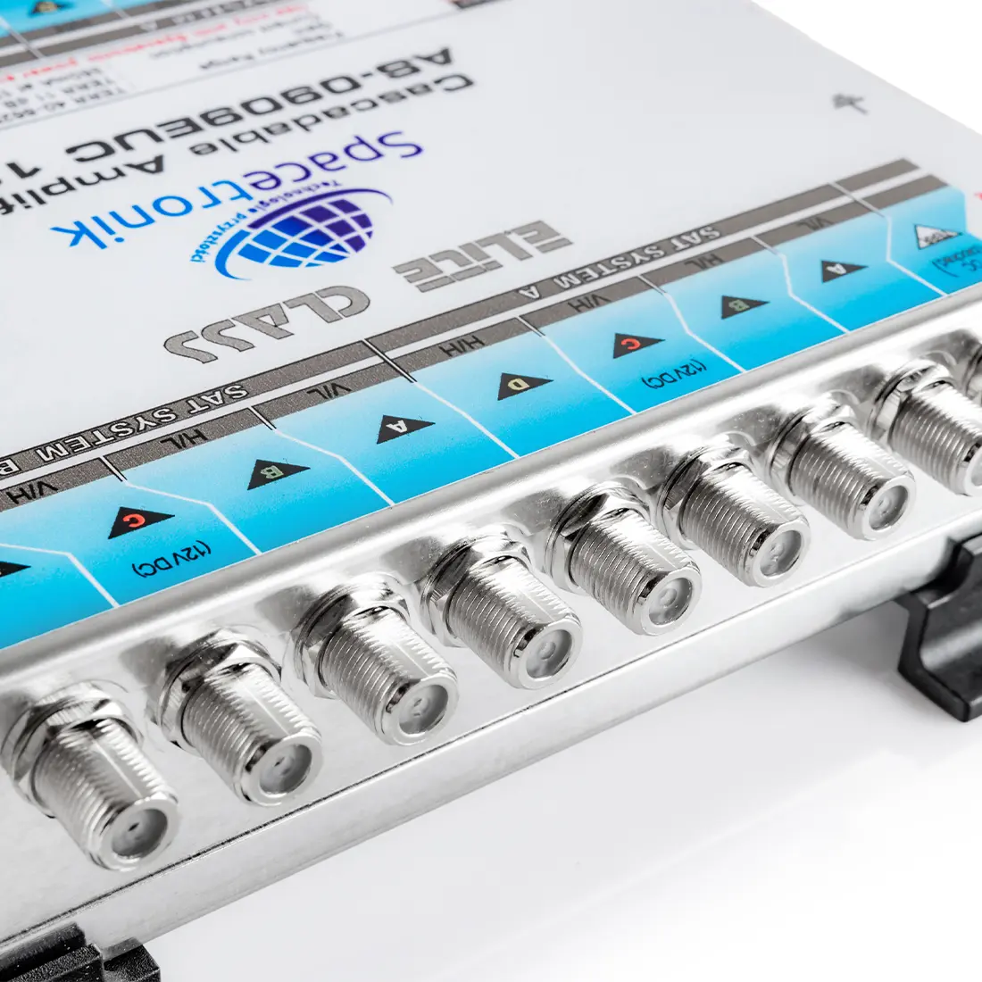 Wzmacniacz kaskadowy na dwie pozycje satelitarne Spacetronik AS-0909EUC zalecany do instalacji opartej o multiswitche kaskadowe wraz z telewizją naziemną dzięki któremu ustabilizujemy jakość dostarczanego sygnału w sytuacji, gdy należy kaskadować dużą ilość multiswitchy lub istnieją bardzo duże odległości pomiędzy multiswitchami, multiswitchem a antenami.