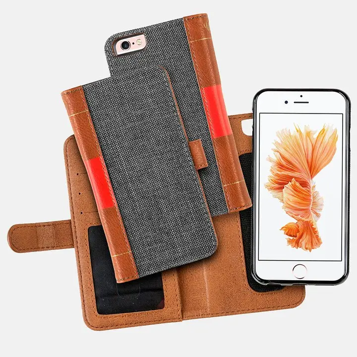 W zestawie z portfelem znajduje się etui Velcro Case do iPhone 7/8. (Etui pasuje również do iPhone 6/6S)