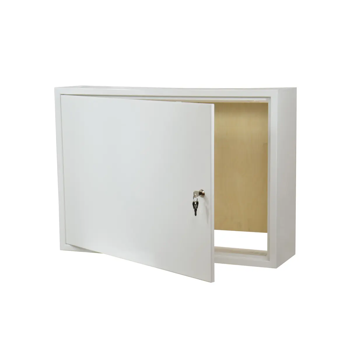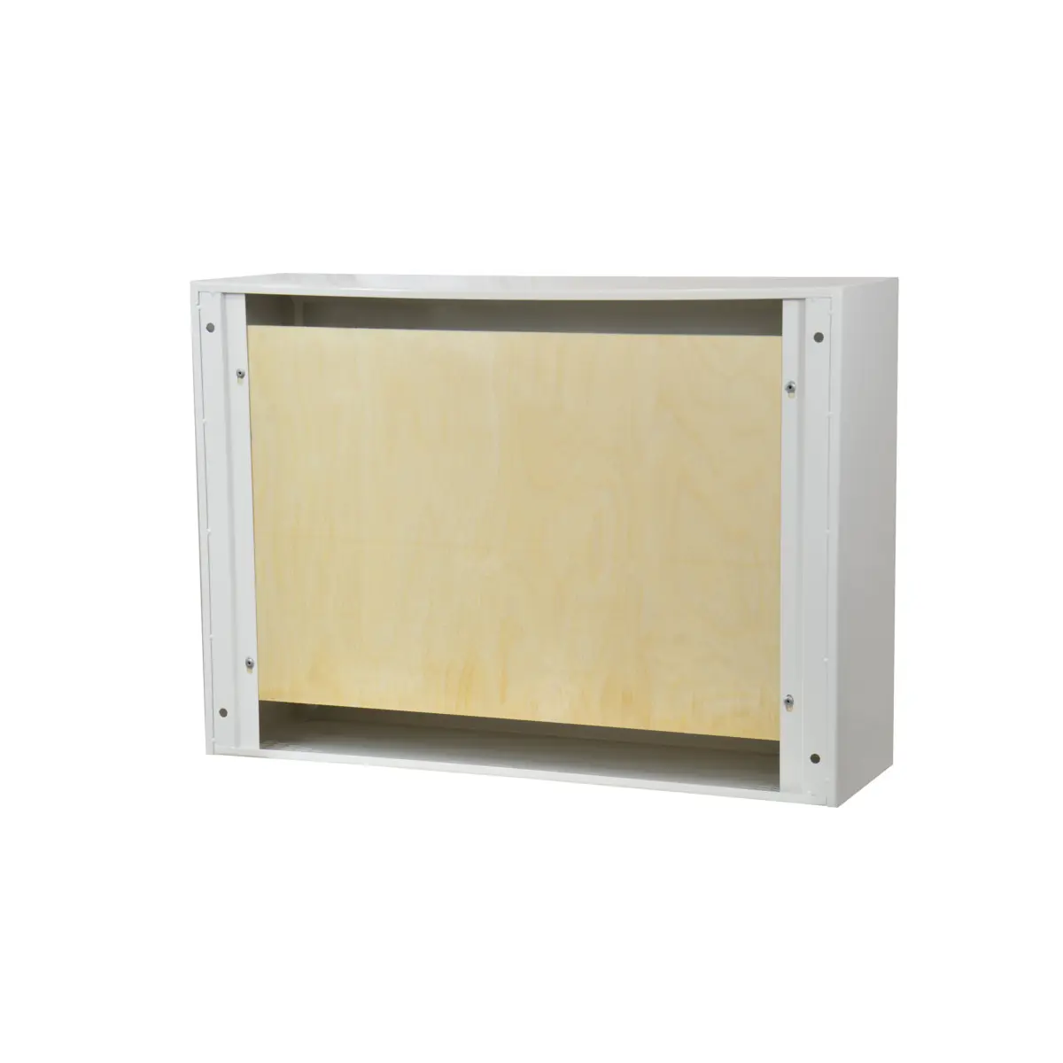 Szafka wykonana bez widocznych spawów (gładki front i boki szafki). Do zestawu dołączamy płytę montażową - solidny panel wykonany z wodoodpornej sklejki o grubości 6 mm. Montaż dodatkowej ścianki ze sklejki, zdecydowanie ułatwia dowolne zagospodarowanie wewnętrznej przestrzeni obudowy i zapewnia wygodną instalację urządzeń.